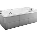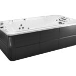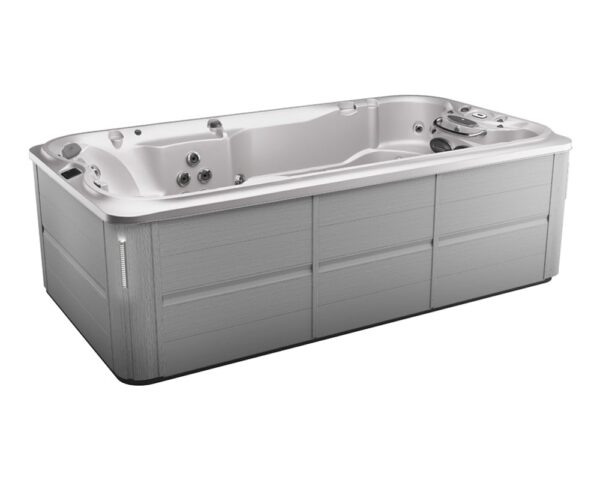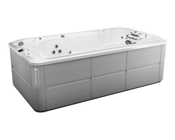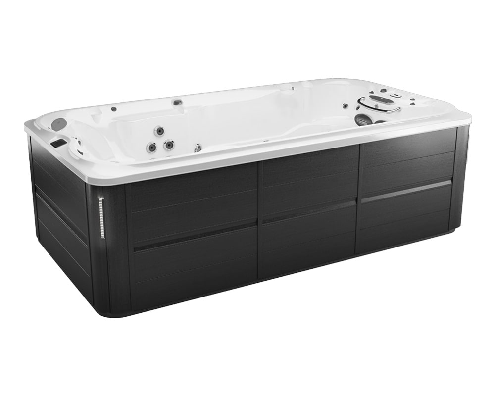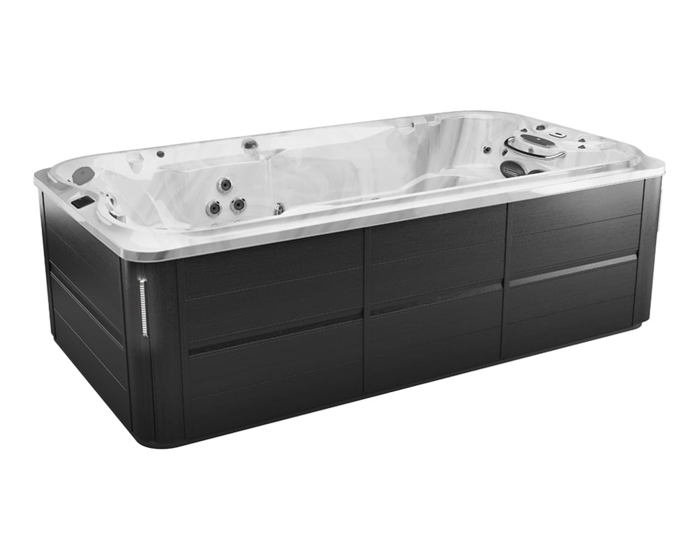 Open design provides spacious swim in a compact footprint Pro360 Therapy WallTM offers full body standing massage, front and back Dual Cool Down Seats help you adjust from deep warm water to cool air, and vice versa Genuine Jacuzzi hydrotherapy with Infrared and Red Light therapy Swim Selector current control lets you customize the flow, intensity, and focus of the water current The swim bar lets you catch your breath, get a feelfor the current, or perfect your kicking technique Stability jets keep you positioned in the swim lane Shell contours stop reflective waves and keep you in your swim lane 2 PowerPro® PX swim jets and 2 SteadySwim™ buoyancy jets create a smooth, predictable current that’s customizable, so you can find your perfect swim Powerful pumps paired with extra-large 2.5″ water lines boost water volume to swim jets so you can train to be your best