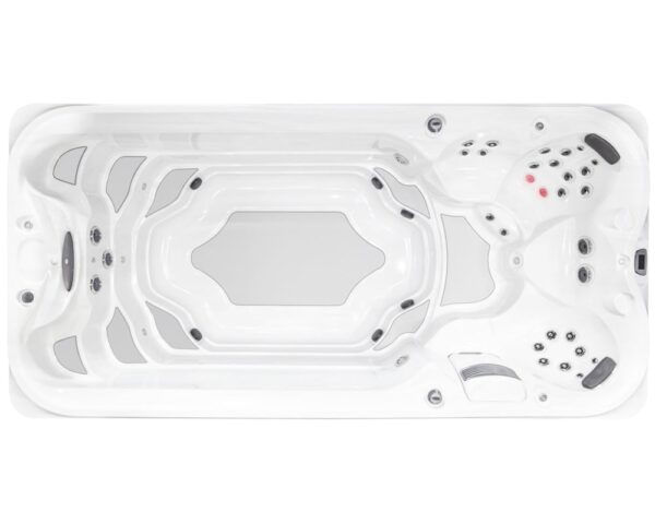 Jacuzzi® PowerPro® AX jet swim current and SteadySwim® buoyancy jet allows for in-place swimming and resistance exercise Low-impact jogging and walking alternative to dry-land activity on Soft Stride mat 4 Hydromassage seats.