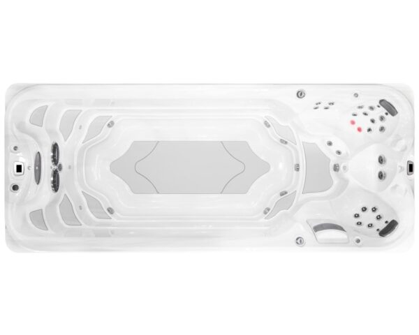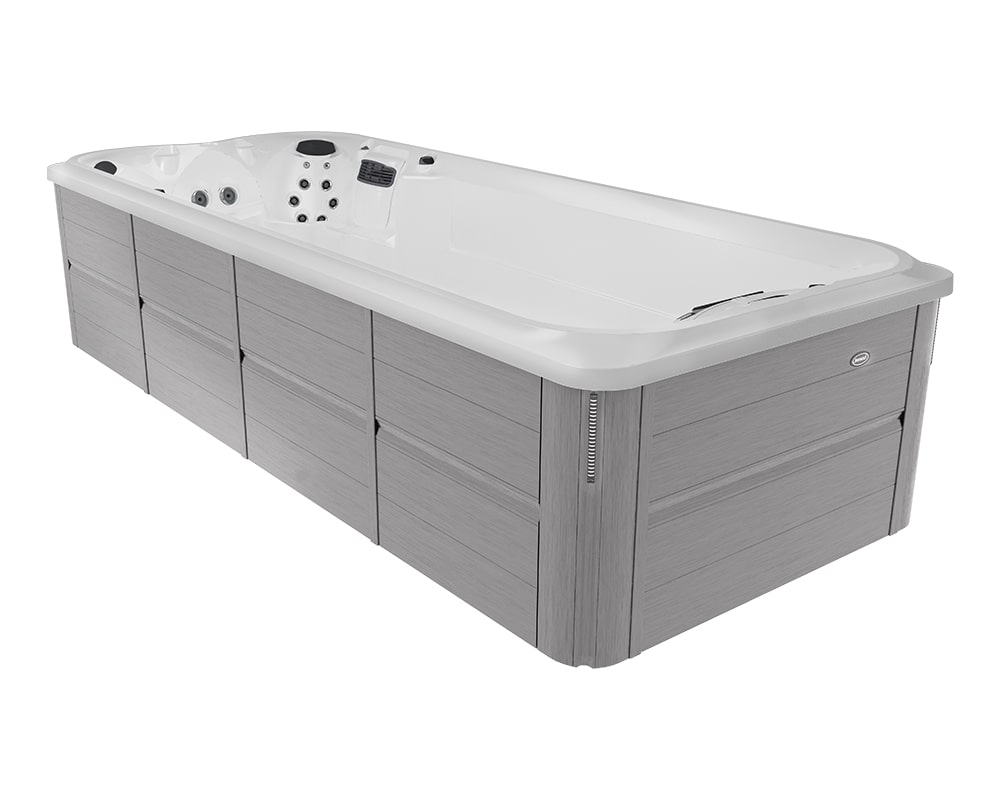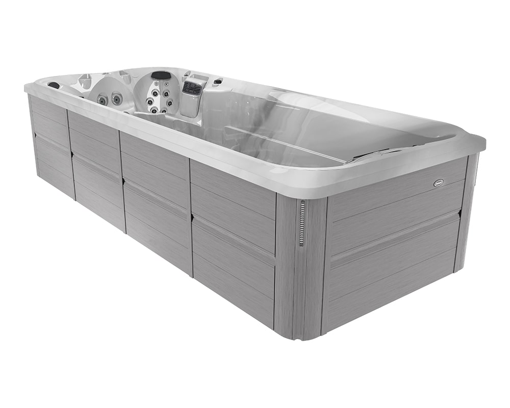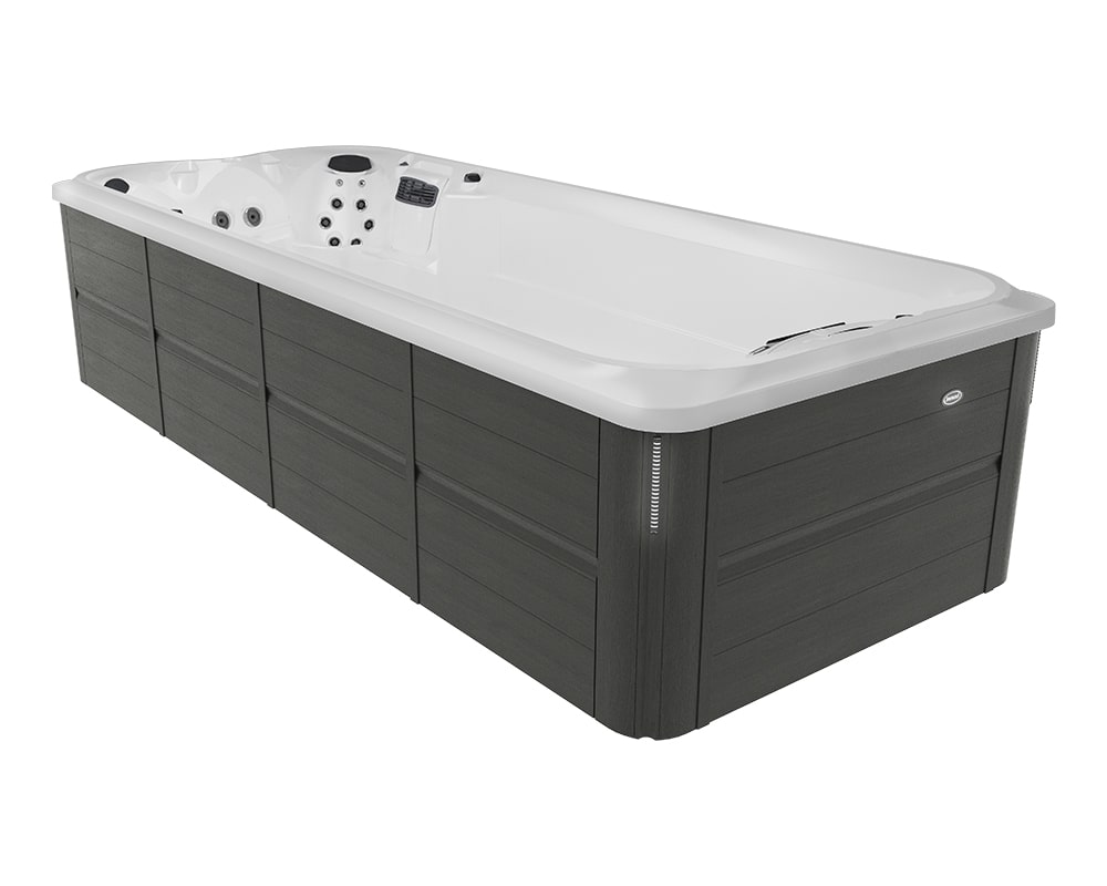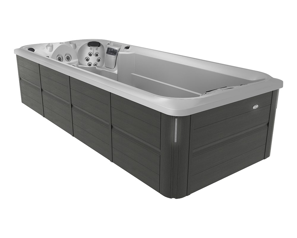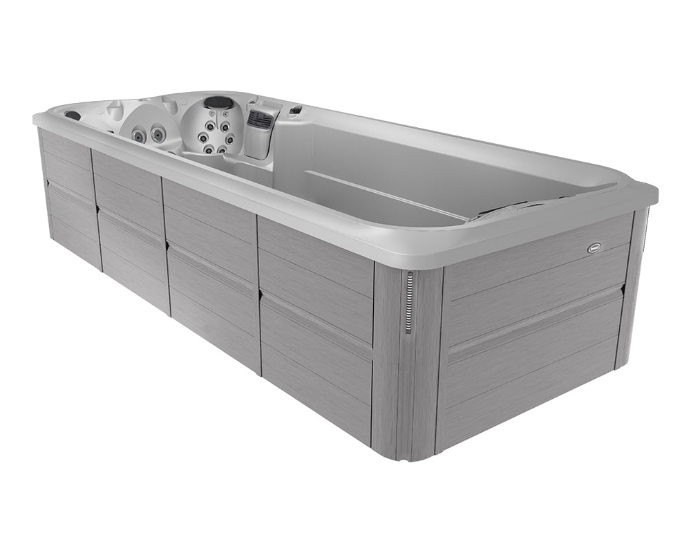 Combine exercise and relaxation with J-19™ Jacuzzi® PowerPro® swim spa, featuring powerful jets for workouts and ergonomic seats with hydrotherapy jets for relief.