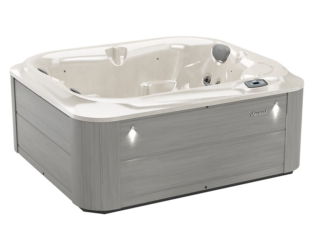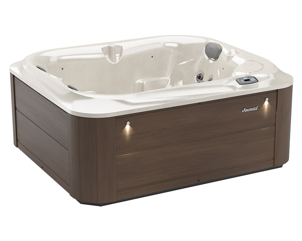 Experience ultimate relaxation with the Jacuzzi J-215™ hot tub. Perfect for small spaces, it features 21 jets and a lounge seat for full-body hydromassage. Enjoy energy efficiency and low maintenance in this compact spa.