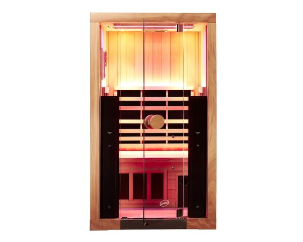 Experience ultimate relaxation with the Jacuzzi JS-1i One Person Sauna, boasting premium features like enhanced audio, light therapy, and innovative heating technology. Now with optional smartphone control!