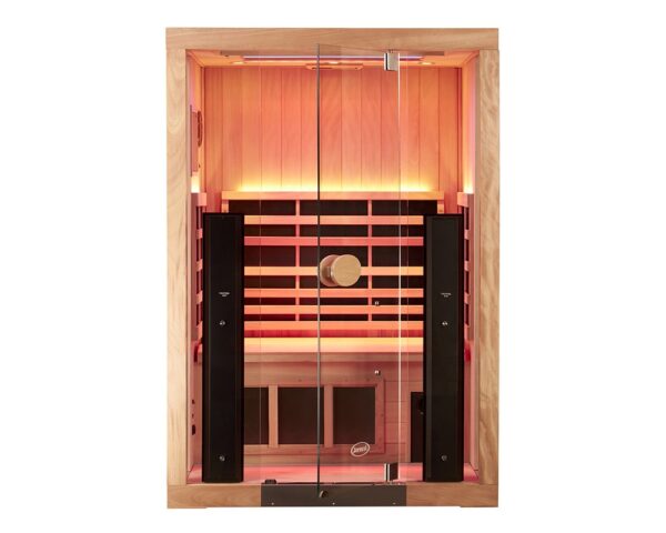 Experience the ultimate sauna luxury with the Jacuzzi JS-2i Two Person Sauna, featuring advanced audio, light therapy, and therapeutic heating. Now with optional tablet/smartphone control.